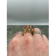 One tip of a marquise cut has been chipped. Highly unnoticeable while worn, and easily replaceable by any/our local jeweler.